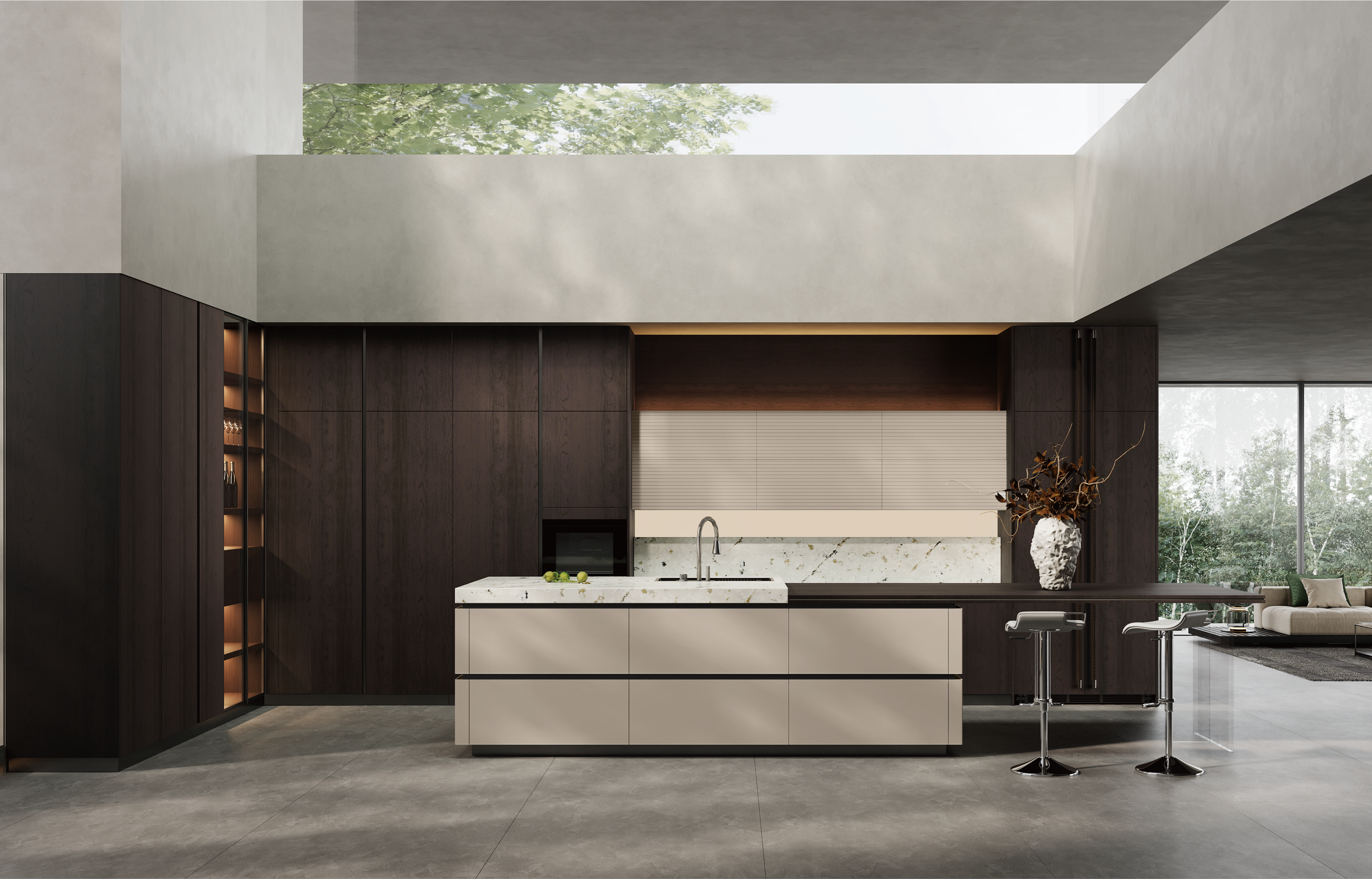 通过BG大游厨柜量体裁柜,定制出适合主厨下厨的烹饪区和洗涤区的舒适高度。